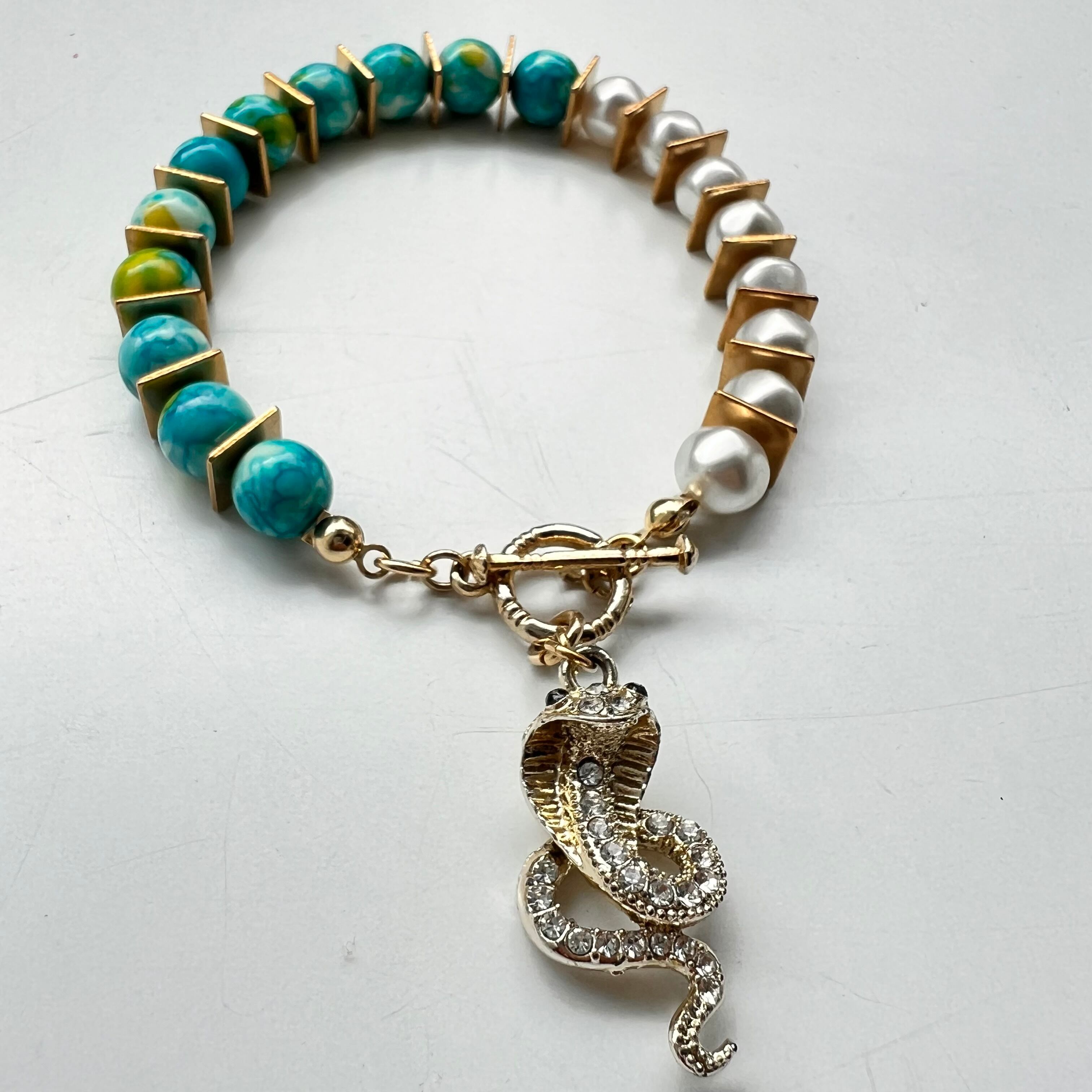 [素材]金属、コブラモチーフ、天然石ビーズ